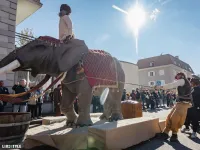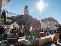 e il suo arrivo a Ora, accompagnato dall'elefante Soliman.